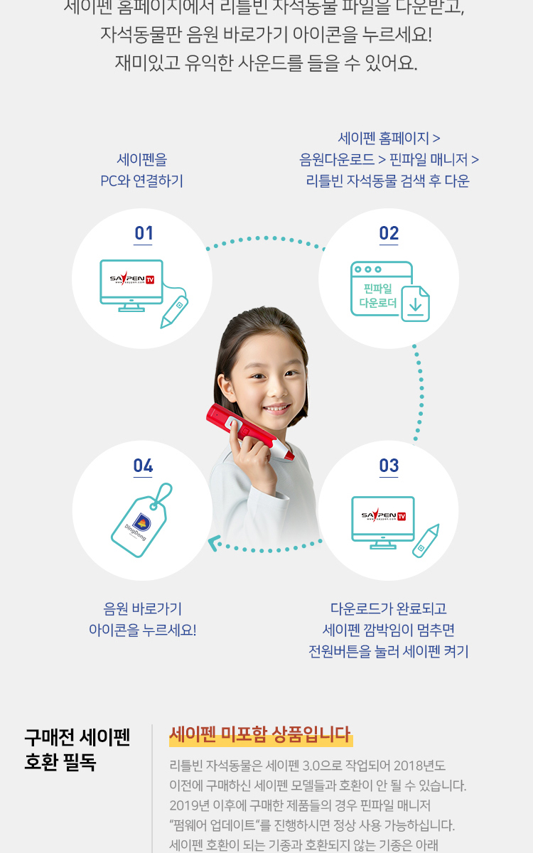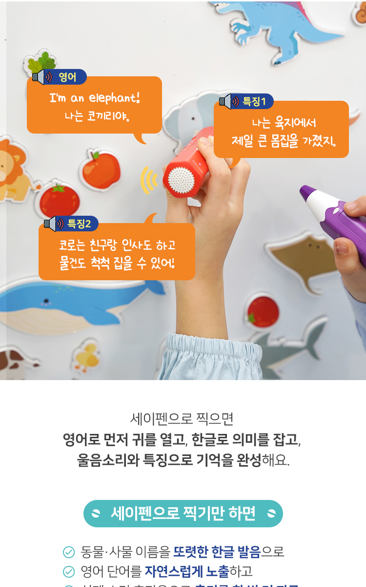 문자인식 광학 센서가 탑재된 첨단 어학기 세이펜을 활용할 수 있는 교재입니다. 특수한 인쇄방식을 사용하여 세이펜으로 책을 읽을 수 있게 코딩하여 인쇄한 교재입니다. 400여개의 출판사의 교재를 세이펜 하나로 모두 사용이 가능하며
